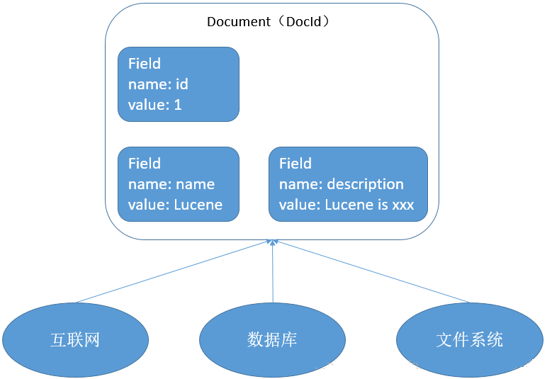 - 每个文档对象中包括多个Field(域),域只有两个属性:域名(name)和域值(value)。一个对象相当于数据库表的一条记录,一个Field相当于表中的一个字段
